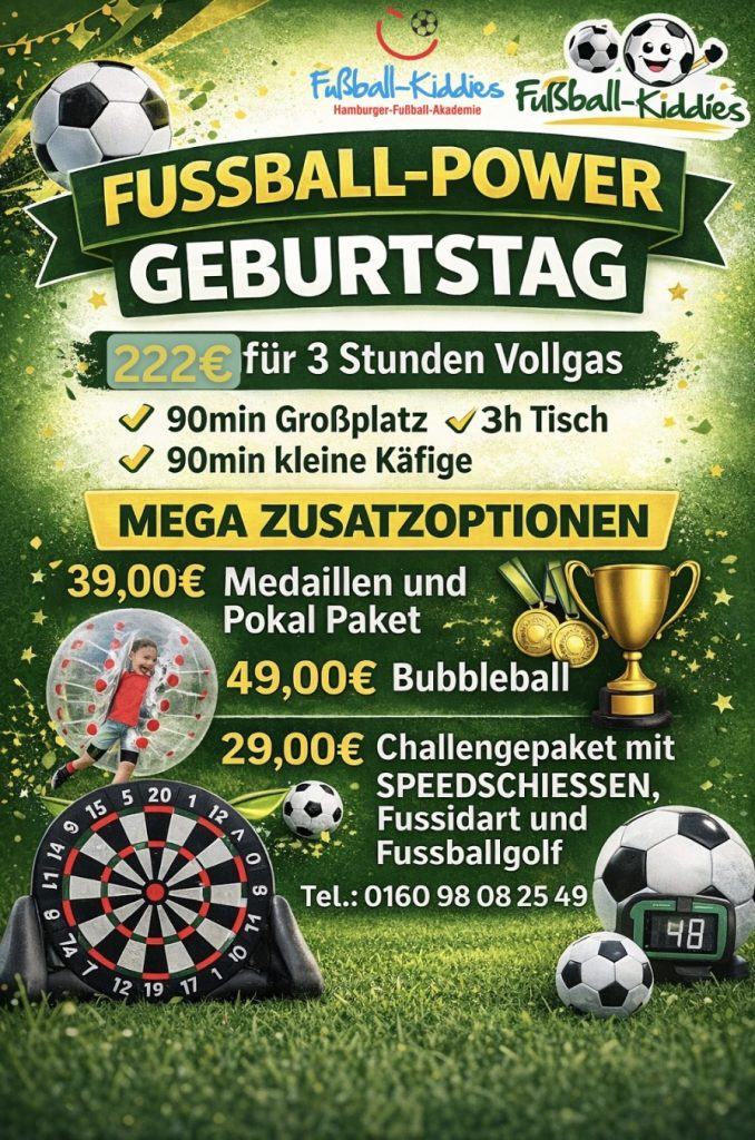 Hier gibt’s die Spaßgarantie, kostenlose Probestunden, Kombi-Rabatte, Fußballfeste…